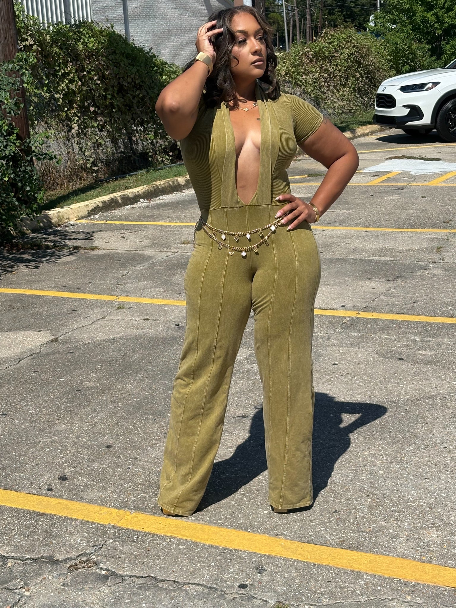 Turn heads in this daring Deep Crush Mineral Wash Jumpsuit. Featuring a bold deep-V neckline, short sleeves, and a curve-hugging fit, this piece is made to accentuate your confidence and style. The mineral wash fabric gives it a unique, edgy vibe while keeping it soft and comfortable for all-day wear. Perfect for a night out, date night, or making a statement wherever you go. Available in multiple stunning shades.